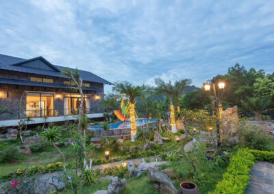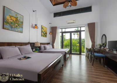 Nestled in the heart of lush greenery, Ui Valley Chateaux seamlessly blends modern elegance with classic charm and Indochinese influences. Each chateaux is fully furnished, offering guests a unique experience that combines luxurious comfort with rich cultural heritage. The serene surroundings and thoughtfully designed interiors create an idyllic retreat, allowing visitors to immerse themselves in tranquility while enjoying the finest amenities.